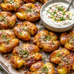 Rețeta care pare banală, dar te dă pe spate: cartofi zdrobiți crocanți cu sos cremos de usturoi