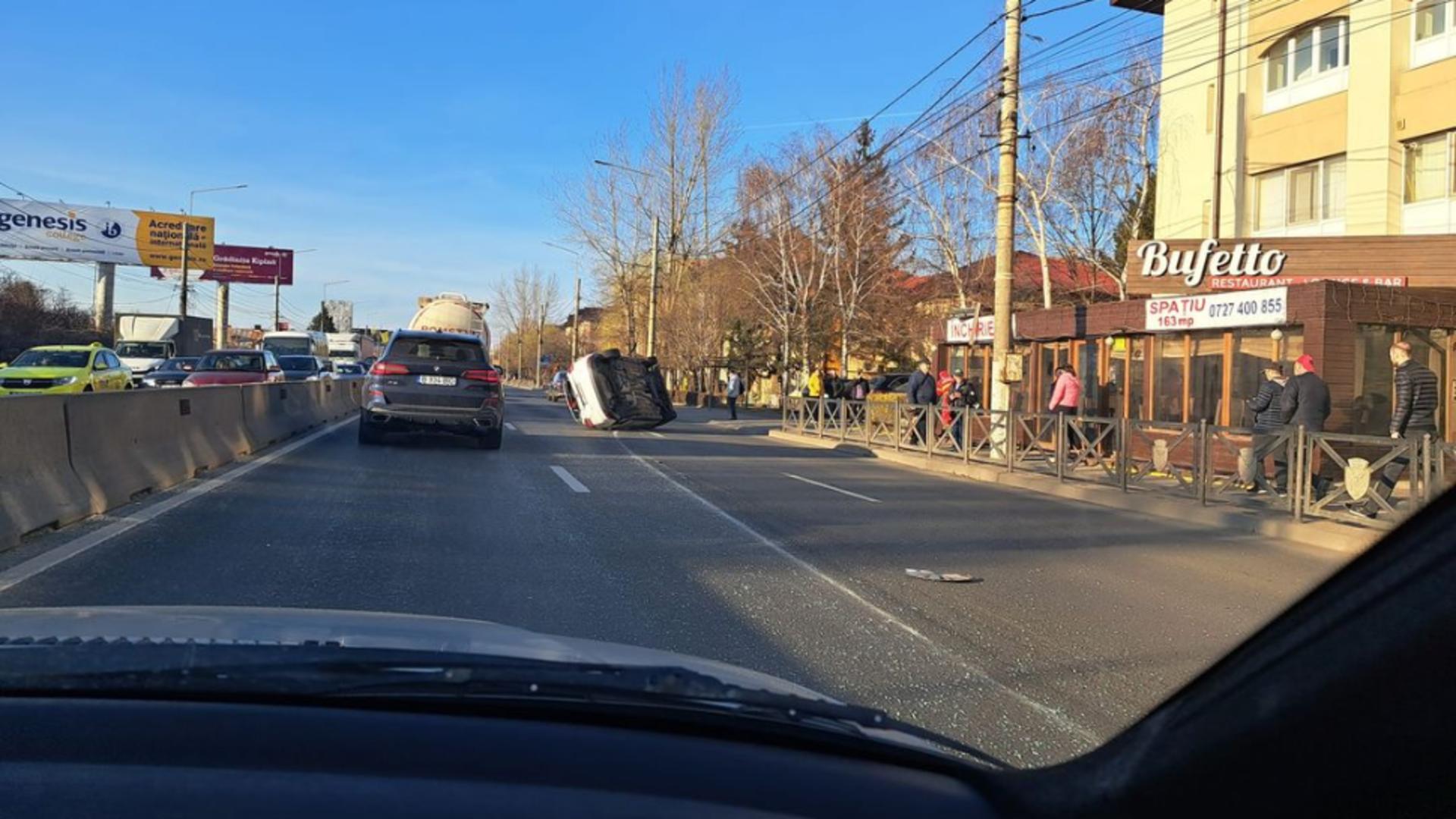 Accidentul s-a produs pe DN1 București-Ploiești, în zona localității Otopeni, pe sensul de mers către Ploiești, județul Ilfov. Două mașini s-au ciocnit, iar una dintre ele s-a răsturnat pe carosabil.