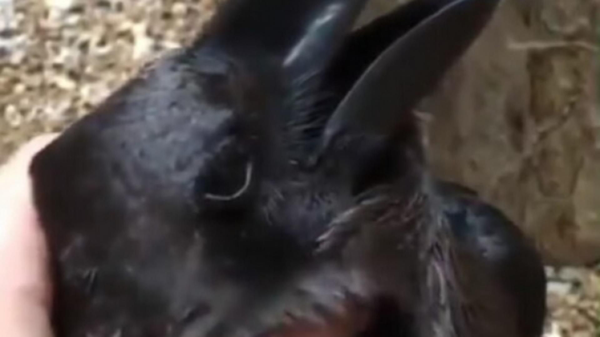“Prima dată, am zis că e un iepure care e mângâiat pe năsuc. Apoi, m-am uitat mai bine și mi-am dat seama că e o cioară scărpinată pe cap”, a scris altul.