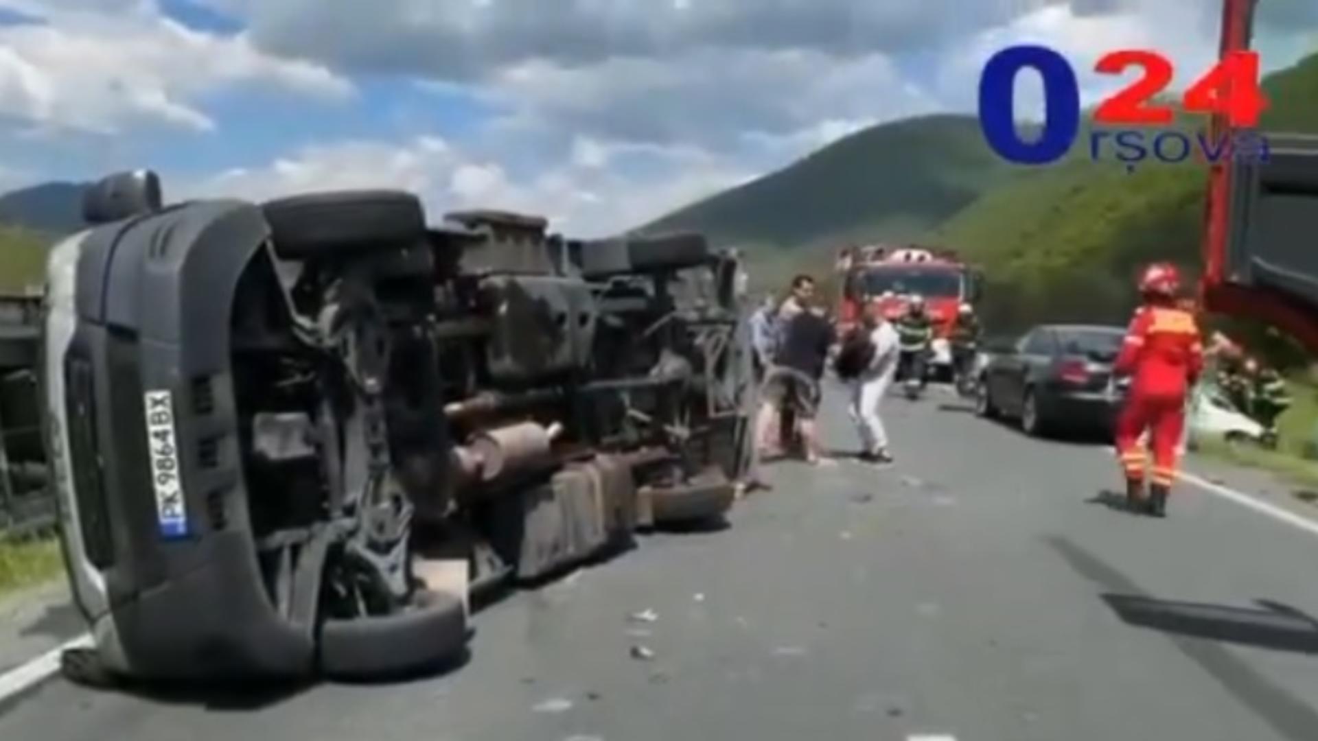 În accident au fost implicate două autoturisme, un autobuz care transporta 53 de persoane și o autoutilitară.