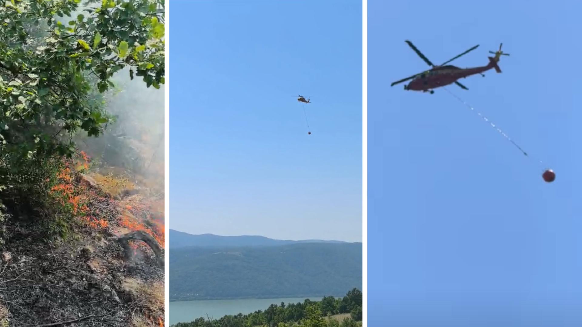 Aerian se intervine cu 2 aeronave C 27 J SPARTAN și cu elicoptere care cară apă din Dunăre”, au informat pompierii.