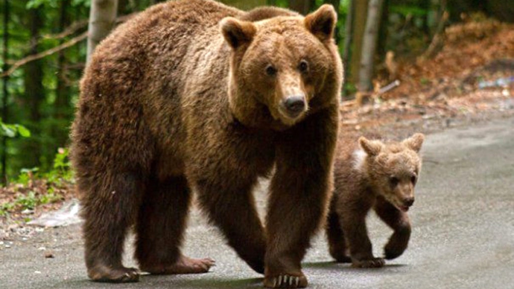 O ursoaică și puiul ei au băgat spaima în loclanicii din Baia de Fier! Animalele sălbatice, observate plimbânu-se nestingherite pe stradă