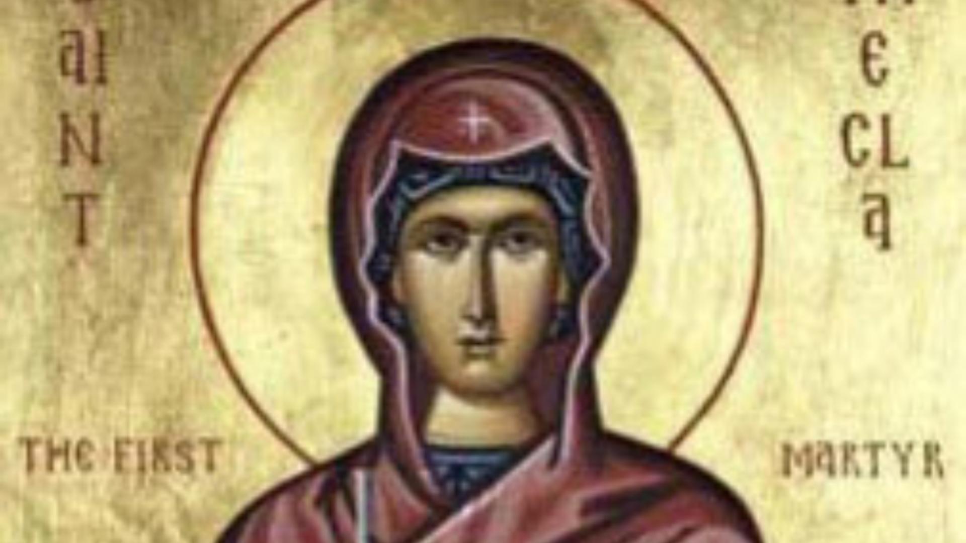Ascultand timp de trei zile si trei nopti cuvantarile acestuia, Tecla s-a convertit la crestinism si s-a hotarat sa duca o viata de feciorie.
