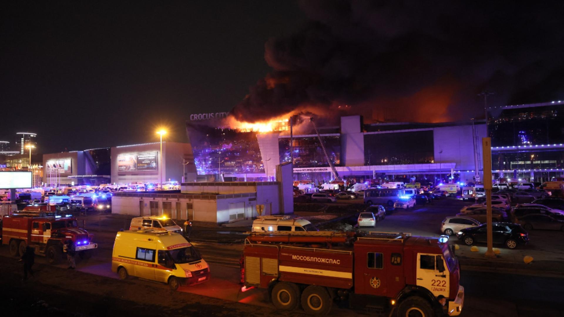 Incendiul de proporţii care a izbucnit în clădirea centrului comercial din oraşul Krasnogorsk, de la periferia Moscovei, îngreunează atât evacuarea persoanelor care se mai află în edificiu, cât şi căutarea atacatorilor, notează EFE.