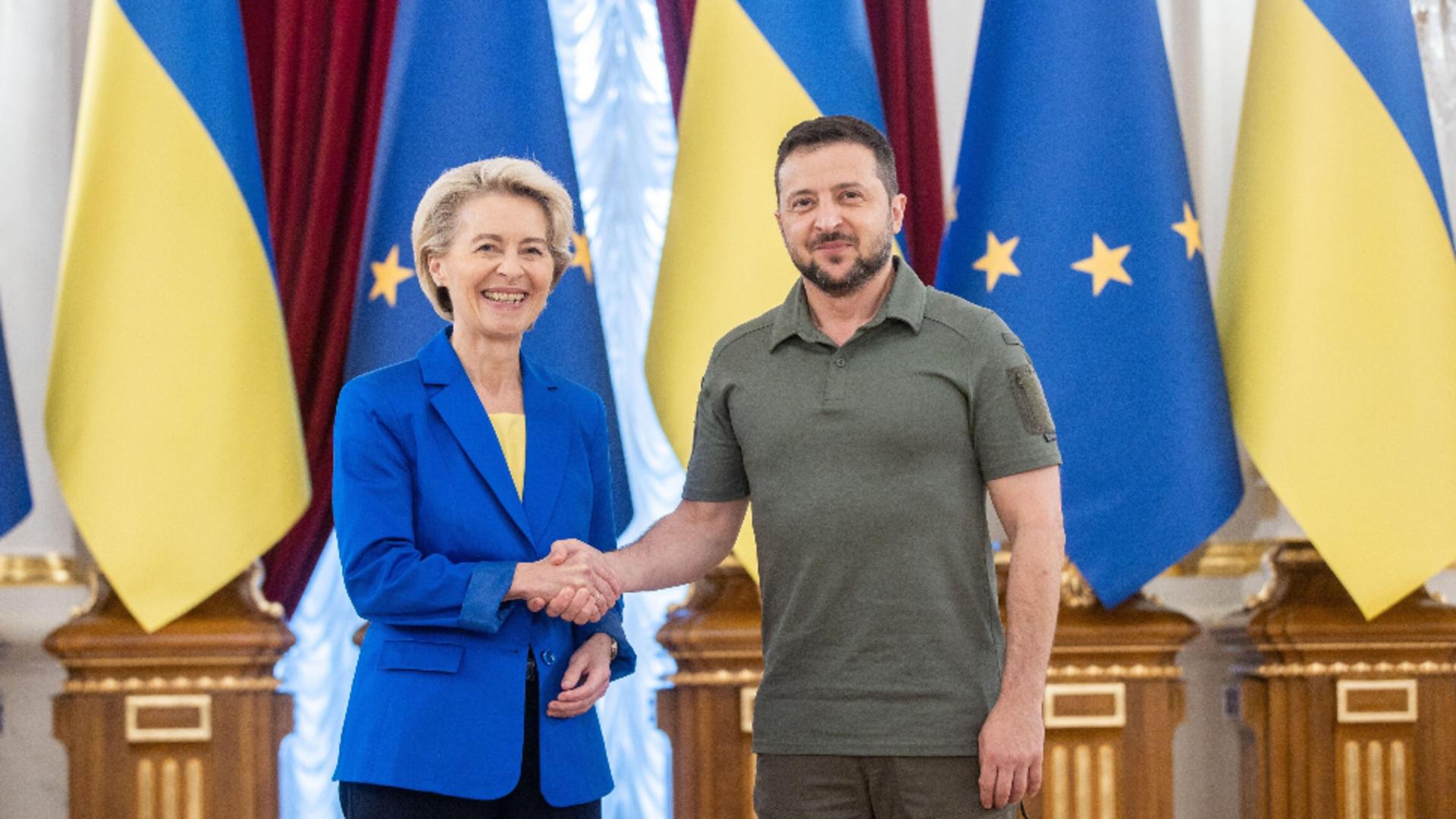 “Pe pământ, aţi expulzat Rusia de pe jumătate din teritoriile pe care le capturase. Pe mare, aţi făcut flota rusă să se retragă şi aţi redeschis un coridor maritim către lume. Iar în aer, forţele voastre au devenit incredibil de eficiente. Vă protejaţi poporul de rachetele şi dronele ruse. Şi numai în ultima săptămână aţi doborât şase avioane de luptă ruse”, a continuat şefa executivului UE.