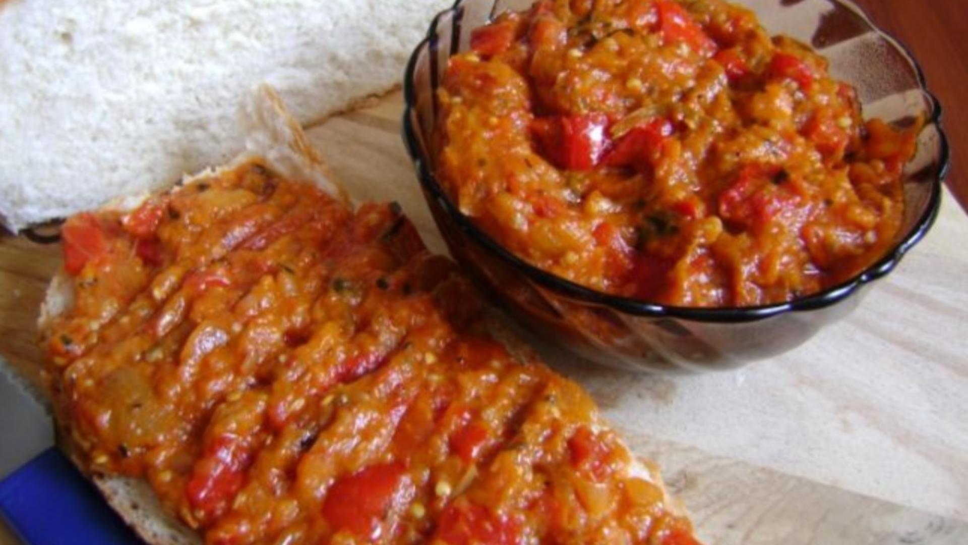 Zacusca țărănească se consumă pe pâine proaspătă.