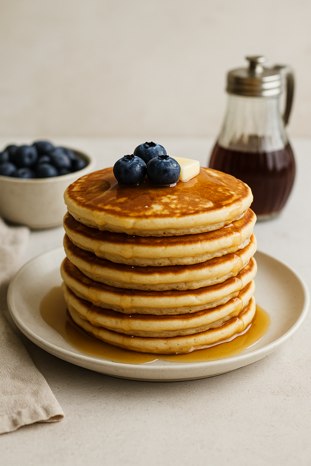 - Servește clătitele în turnulețe, cu fructe de pădure proaspete și sirop de arțar din belșug.