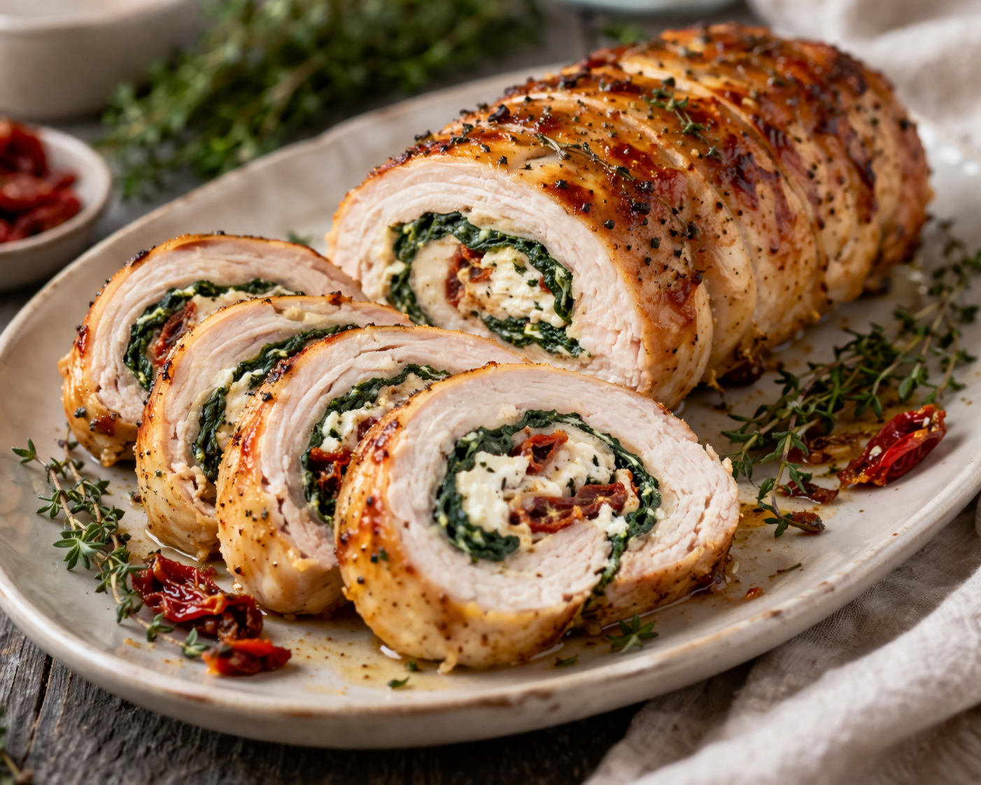 Explozie de gust pentru masa de Paște: ruladă de pui cu spanac și cremă de brânză, suculentă și elegantă